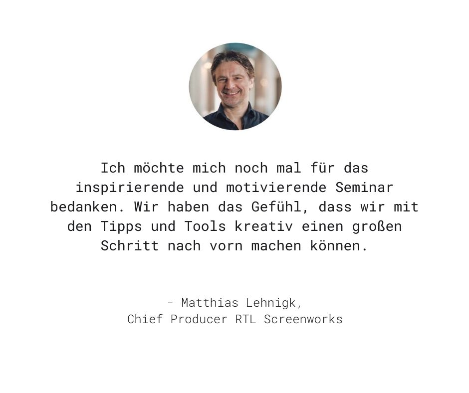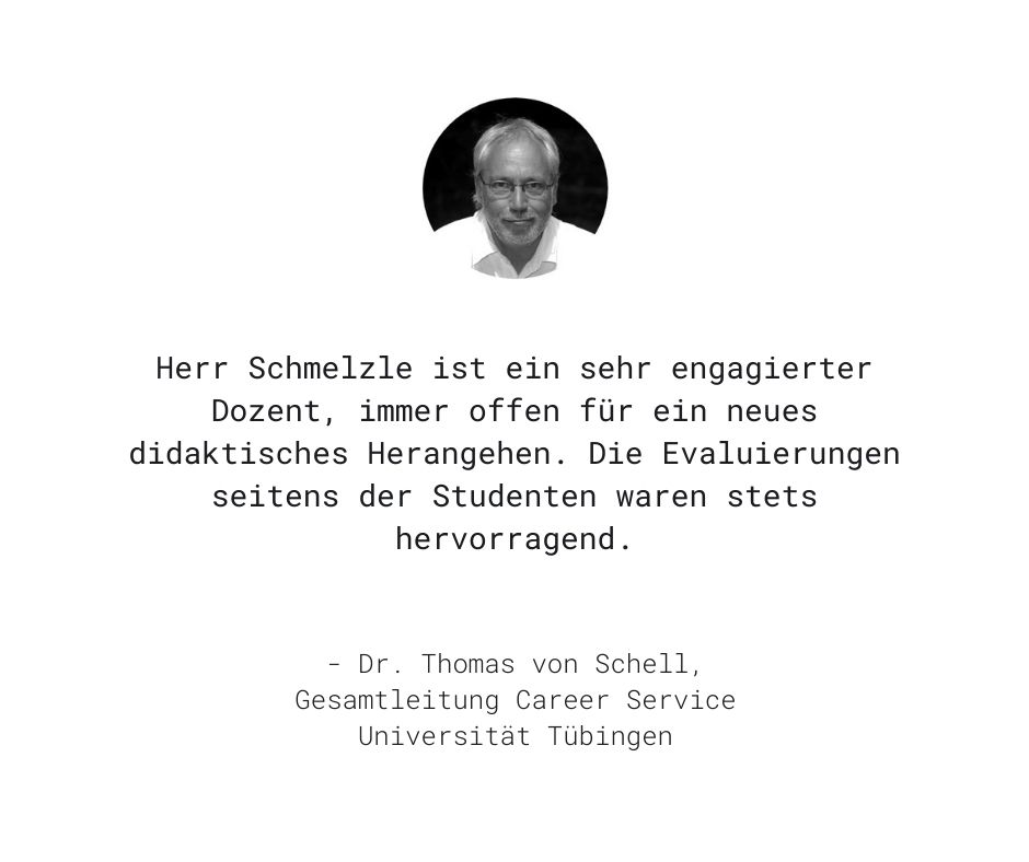 Inzwischen habe ich weit über 100 Seminare konzipiert. Hauptsächlich für Unternehmen und Agenturen, aber auch für die Bridgehouse Academy oder die Haufe Akademie. Seit 2015 bin ich Gastdozent für Corporate Language an der Universität Tübingen, seit 2016 ausgebildeter Business-Trainer und zertifizierter Online-Trainer. Fragen rund um Termine und maßgeschneiderte Inhouse-Seminare beantworte ich gerne.