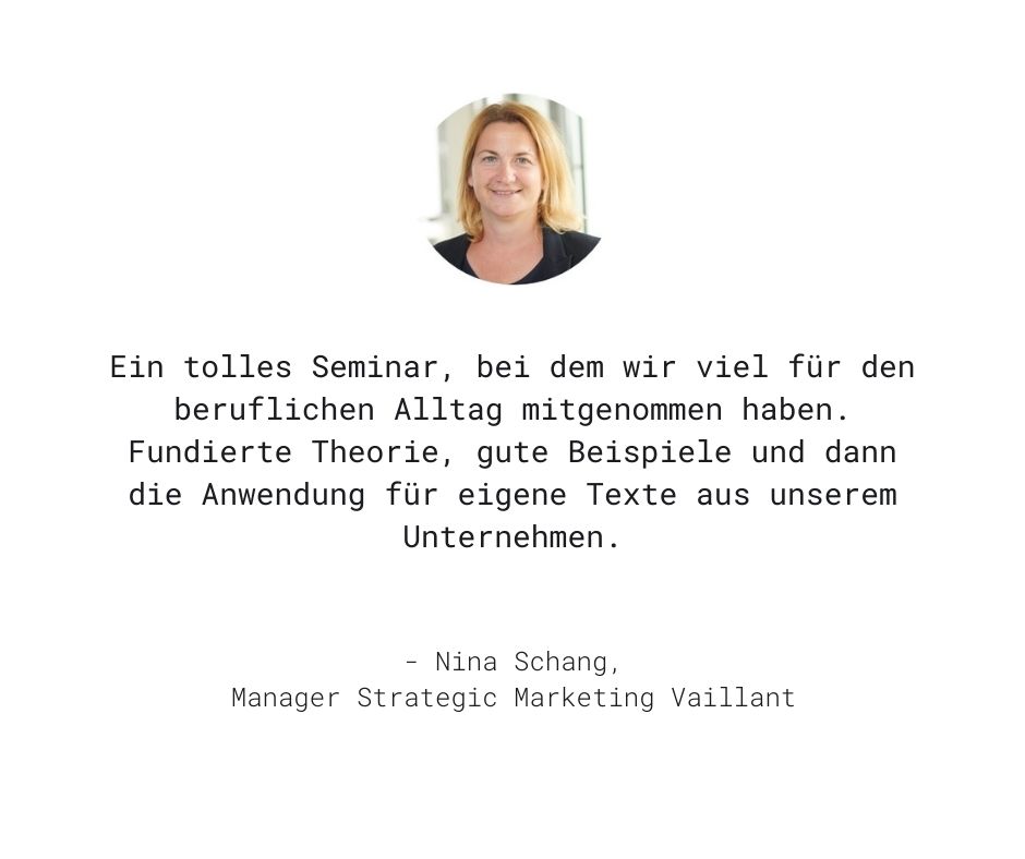 Fach- und Führungskräfte aus Marketing, Produktmanagement, sowie PR- und Öffentlichkeitsarbeit, die fundierte Methoden beim Schreiben möchten und klare Kriterien, um erfolgreiche Texte zu beurteilen.